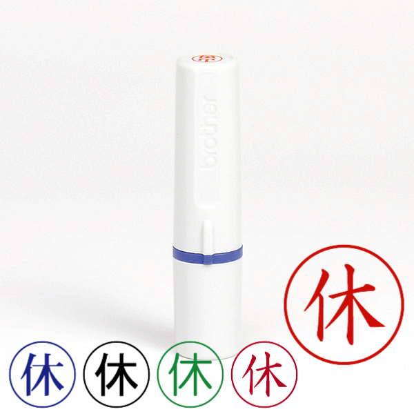 記帳用ビジネススタンプ【休】(ブラザー記帳印・簿記印・ネーム6[brother・name6]・インク内蔵・印面直径約6mm)・書体/枠有無/インク色の選択可能