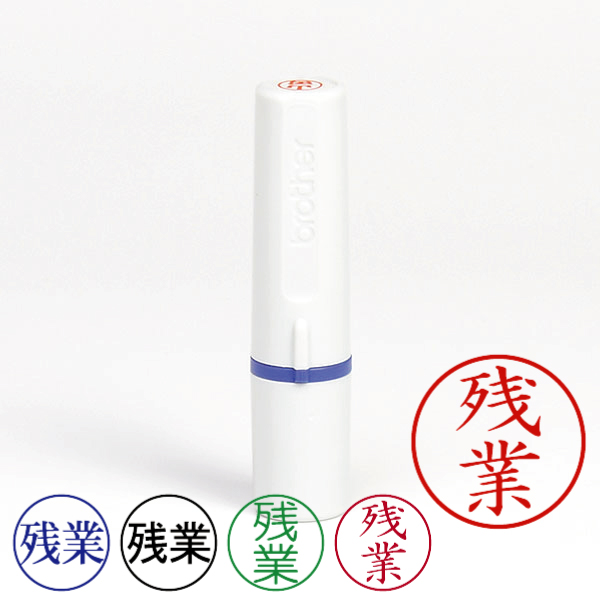 記帳用ビジネススタンプ【残業】(ブラザー記帳印・簿記印・ネーム6[brother・name6]・インク内蔵・印面直径約6mm)・書体/枠有無/インク色の選択可能