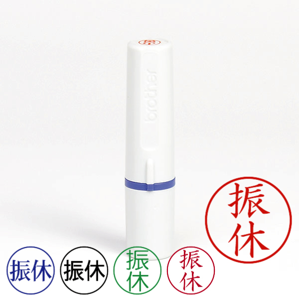 記帳用ビジネススタンプ【振休】(ブラザー記帳印・簿記印・ネーム6[brother・name6]・インク内蔵・印面直径約6mm)・書体/枠有無/インク色の選択可能
