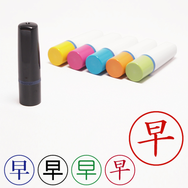 記帳用ビジネススタンプ【早】(ブラザー記帳印・簿記印・ネーム印[brother]・インク内蔵・印面直径約10mm)・書体/枠有無/本体色/インク色の選択可能