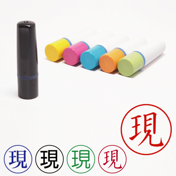 記帳用ビジネススタンプ【現】(ブラザー記帳印・簿記印・ネーム印[brother]・インク内蔵・印面直径約10mm)・書体/枠有無/本体色/インク色選択可能