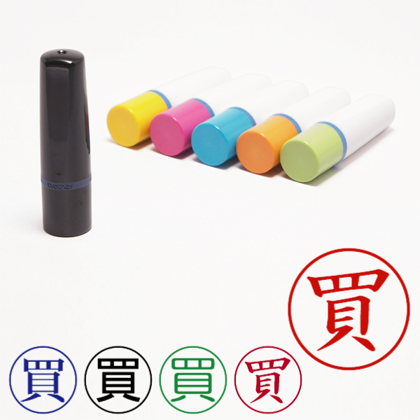 記帳用ビジネススタンプ【買】(ブラザー記帳印・簿記印・ネーム印[brother]・インク内蔵・印面直径約10mm)・書体/枠有無/本体色/インク色選択可能