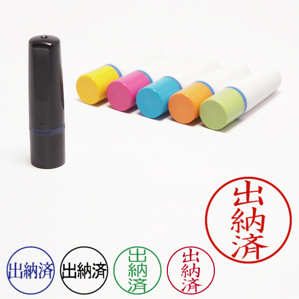 記帳用ビジネススタンプ【出納済】(ブラザー記帳印・簿記印・ネーム印[brother]・インク内蔵・印面直径約10mm)・書体/枠有無/本体色/インク色の選択可能
