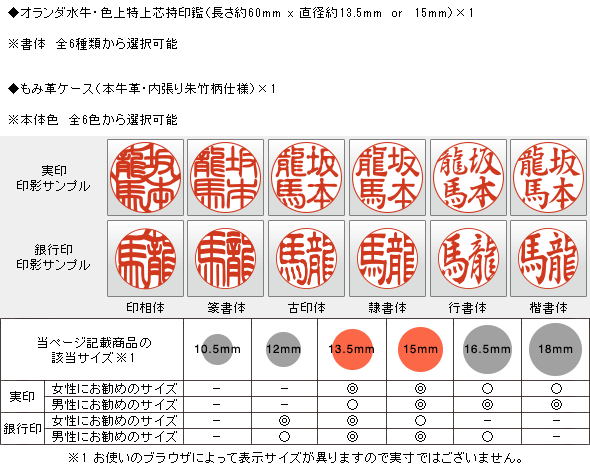![]() 黒檀印鑑 もみ革印鑑ケース付き (全6色から選択可) |