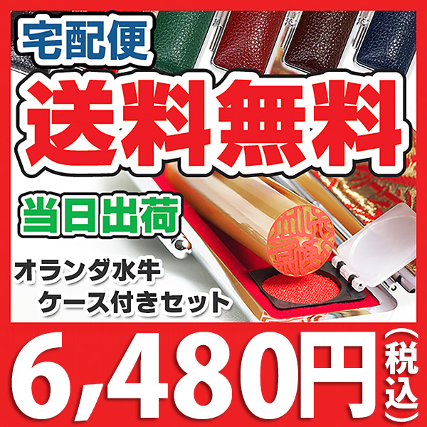 【キャンペーン商品】送料無料・オランダ水牛・色上ご印鑑(実印 or 銀行印/13.5mm or 15mm) + もみ革ケース付き【宅配便にておとどけ】