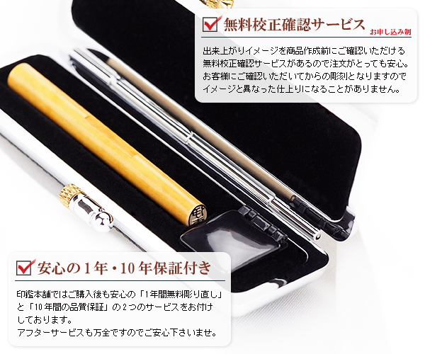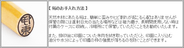 捺印後のお手入れや取扱いに注意していただく事で、長い期間安心してお使いいただける印材です。