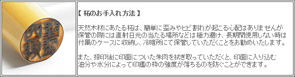 捺印後のお手入れや取扱いに注意していただく事で、長い期間安心してお使いいただける印材です。