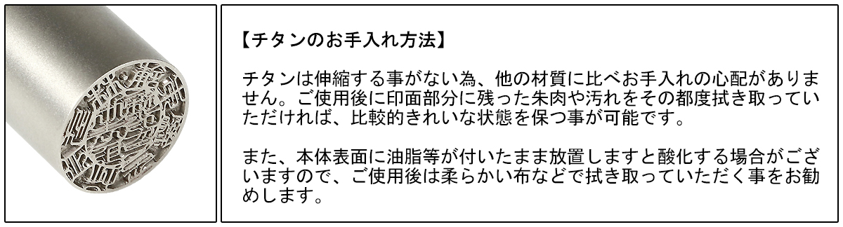チタンは高級感と重量感を併せ持つスタイリッシュな金属製印材です。