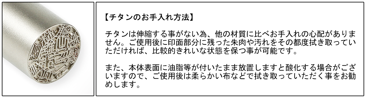チタンは高級感と重量感を併せ持つスタイリッシュな金属製印材です。
