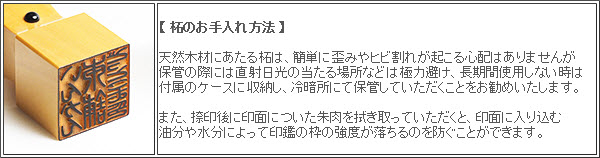 捺印後のお手入れや取扱いに注意していただく事で、長い期間安心してお使いいただける印材です。