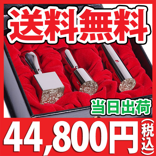 【キャンペーン商品】送料無料・法人印鑑・チタン印鑑3本セット・シルバーミラー・スワロフスキーアタリ付き