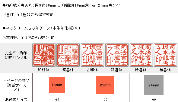 【キャンペーン商品】送料無料・先生印(職印・資格者印・士業印)角印ケースセット・柘・角天丸/21mm or 18mm + ネオクロームもみ革ケース付き【宅配便にておとどけ】