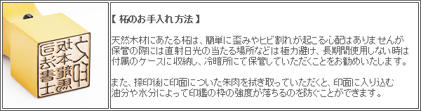 捺印後のお手入れや取扱いに注意していただく事で、長い期間安心してお使いいただける印材です。