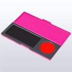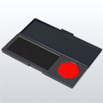 朱肉とスタンプ台が一緒になった便利な朱肉。シュスタミニはストッパー付きで持ち運びにも便利