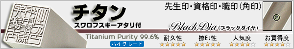 ![]() シルバーブラスト チタン 先生印 資格印・職印 角天丸 スワロフスキー アタリ付 ブラックダイヤ 60x15mm \19,800(税込) |