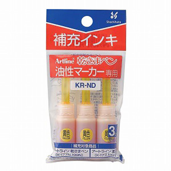 ![]() シャチハタ アートライン 乾きまペン油性マーカー 補充インキ 黄色 Shachihata Artline KR-ND 商品コード:70220 |
