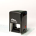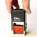領収書やビジネス文書への捺印に便利なスタンプ台を内蔵した連続捺印できるゴム印です。上から押すとスタンプ台に接地しているゴム印面が回転し、捺印部分へ降下して印字します。