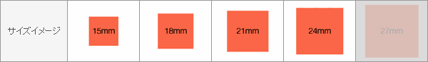 印鑑のサイズはご使用の用途などにあわせて下記の5つのサイズからお好みでお選びいただけます。